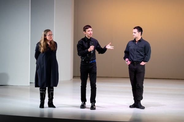 L to r: Sarah Ruhl, Anthony Roth Costanzo, and Zack Winokur in a Works and Process presentation of BLO’s The Seasons. Photo: Titus Ogilvie-Laing