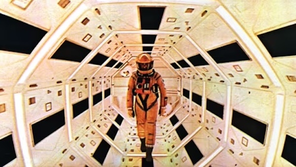 His preoccupation with extraterrestrial life led to 2001, based on Arthur C. Clarke’s novel. His research on space travel made him reject the then standard “earth vs aliens” cliché and embrace a futuristic vision that some consider his most outstanding cinematic achievement. Critics, at first, were not kind. Pauline Kael, not a fan of Kubrick, (she would later dismiss Clockwork Orange as “psychedelic fascism”) published a review that “bordered on brutal.” Even Clarke, with whom Kubrick had collaborated, “was shocked by the film’s transformation.” Kubrick’s reaction: “Perhaps there is some element in the lumpen literati that is so dogmatically atheist and earthbound that it finds the grandeur of space anathema.” In a rare interview, the director attempted to explain the famous “star child” ending: “The idea is supposed to be that he is taken in by God-like entities, creatures of pure energy and intelligence with no shape or form, who put him in what can be described as a human zoo. His whole life passes in that room. He has no sense of time; it just seems to happen. As it does in the film.” 2001‘s out-of-this-worldliness appealed to the ’60s generation, and lines for the movie were around the block.