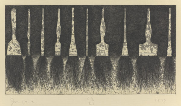 Jim Dine, Five Paintbrushes (sixth state), 1973. Etching, drypoint, and aquatint in black-green ink. Yale University Art Gallery, Richard Brown Baker, B.A. 1935, Collection. Photo: courtesy of the Yale University Art Gallery