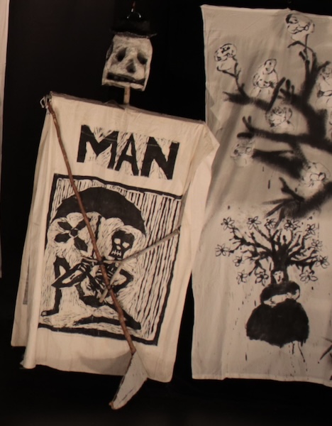 B&P has been helping audiences to find a way out of inhumane political messes ever since. They continue their protests against war and a plethora of other universal scourges, such as the destruction of our fragile climate, poverty, lack of basic human necessities, and the forced imprisonment of immigrants, to name a few. An early appearance by a ghostly papier-mâché Grim Reaper puppet sets the tone — he is wearing a sash that reads “Man.” We’re in for it. We increasingly face seasons of darkness and “distress” that we need, somehow, to turn into “success” if we are going to survive.
