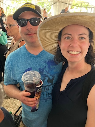 Matthew Walsh, 40, state Department of Transportation administrator, and Alison M. Seidl, 40, pediatric dentist, Anchorage, Alaska. Matthew: “I told her I wasn’t moving to Anchorage unless we could get a house with a two-car garage and we could come to Jazz Fest.” Alison: “We have four kids.” Photo: Jon Garelick