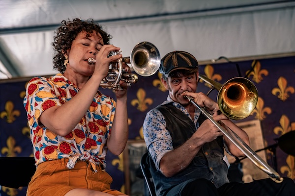 Shaye Cohn (cornet) and Barnabus Jones (trombone) of Tuba Skinny. Photo: Katie LaRocca