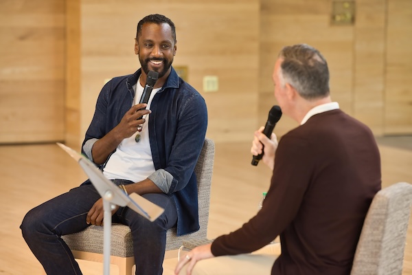 Carlos Simon (with BSO Artistic Administrator Eric Valliere) at the Tanglewood Learning Institute, August 2023. Photo Hillary Scott, courtesy of the BSO