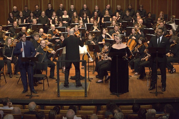 Gil Rose conducting the cast, chorus, and orchestra in the BMOP production of Frederick Douglass. Photo: Jason J Lachapelle