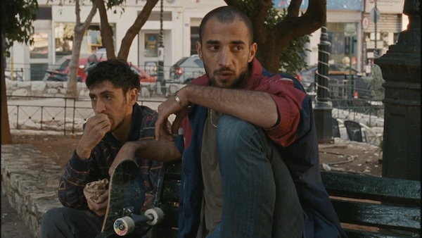 Reda (Aram Sabbah) and Chatila (Mahmood Bakri) stage an accident in an Athens park, a scam that gives them a chance to steal a woman’s purse and run away. The proceeds turn out to be meager: just five Euros. In the midst of the crime, they meet and befriend Malik (Mohammad Alsafura), a 13-year-old boy who asks if they’re Palestinian. It turns out that the kid is a refugee from Gaza. Struggling with a heroin addiction he can’t kick, Reda does sex work to get by. Their ultimate goal is to escape to Germany so that Chatila can open a café. Despite being cousins, under different circumstances the pair would not have been so dependent on each other. But, in exile, they’re all they have. At one point, Chatila meets Tatiana (Angelika Papouli), a Greek woman with a drinking problem, and he seduces her. The cousins plan to buy counterfeit passports, but Reda ends up spending all their money on drugs. This setback propels a desperate plan for the cousins to procure more cash, which results in complications that lead to danger and cruelty.