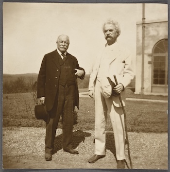 He does well, too, untangling the exasperating web of relationships that marked Twain’s last years, especially those between the author, his live-in official biographer Albert Bigelow Paine, his secretary-cum-housekeeper Isabel Lyon, and manservant (later Lyon’s husband) Robert Ashton. The latter couple’s betrayal of his trusting nature was a late blow, though not nearly so shattering as Jean’s death from an apparent heart attack induced by a seizure on Christmas Eve 1909. Four months later, Twain joined her, Livy, and Susy in the cemetery in Elmira, NY. (Clara lived until 1962.)