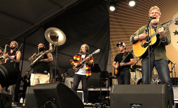 Snacktime horns, Josh Kaufman, Lukas Nelson, and the Swell Season’s Glen Hansard at Newport Folk. Photo: Paul Robicheau