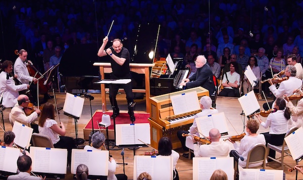 Andris Nelsons conducting the premiere of John Williams’s Piano Concerto with Emanuel Ax at Tanglewood. Photo: Hilary Scott