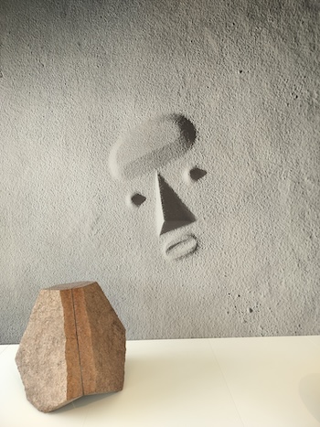 Noguchi made a model in sand of cartoonish features, with a singular raised brow, two eyes, a peaked nose, and a mouth with an enigmatic expression — his Mona Lisa? The face suggests bemusement rather than shock; this is anything but the horror of Edvard Munch’s The Scream. It was only two years after America leveled Hiroshima and Nagasaki with atomic bombs, no doubt a grim event for the conflicted artist. Noguchi’s father was Japanese and mother American. He was both, and spent part of World War II, by choice, in a detention camp for Japanese-Americans on an Indian reservation in Arizona. Before and after the A-bomb, Japanese culture shaped his life and work.