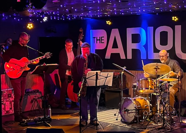 The quartet Clear Audience is well into their second decade delivering their unique brand of progressive post-bop swing and experimentation. They perform original pieces by all the band members: saxophonist Andy Voelker, guitarist Steve Fell, bassist Jef Charland, and drummer Luther Gray. They’re playing the final 2025 summer concert at the Eustis Estate presented by Mandorla Music.