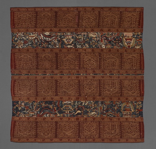 Woman’s Ceremonial Skirt (Tapis), Indonesia, Sumatra, Lampung, 16th–17th century. Cotton and silk; warp-faced plain weave, warp ikat, and embroidery. Photo: Yale University Art Gallery.