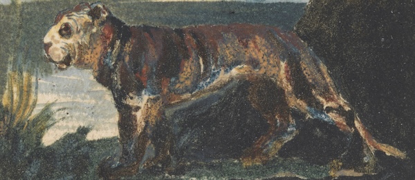 William Blake, The Tyger (Plate 42, from Songs of Innocence and of Experience), detail, 1794, color-printed relief etching with hand coloring in watercolor. Photo: Yale Center for British Art, Paul Mellon Collection