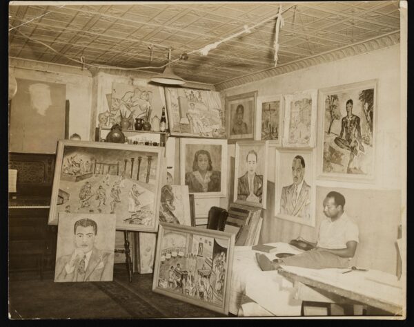 Photograph of Beauford Delaney in his NYC studio, 1940. Photo: Betsey B. Creekmore. Special Collections and University Archives, University of Tennessee, Knoxville
