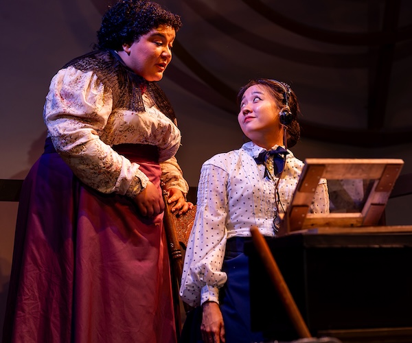 Silent Sky by Lauren Gunderson. Directed by Sarah Shin. Choreography by Peter DiMuro. Scenic design by Qingan Zhang. Costume design by Leslie Held. Lighting design by Eduardo M. Ramirez, sound design and composition by Kai Bohlman, properties design by Julia Wonkka, projection design by Michi Zaya. A Catalyst Collaborative@MIT production, produced by Central Square Theater, Cambridge, through October 5.