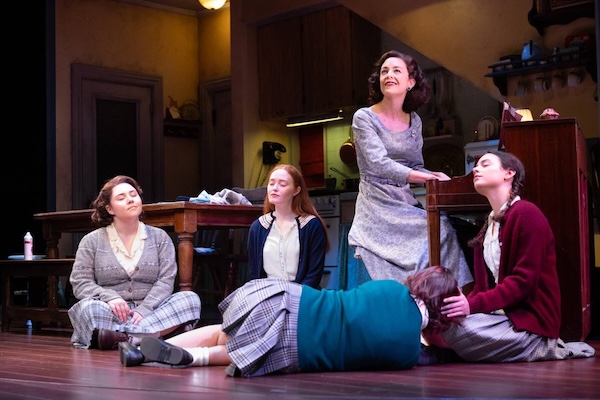 Meghan Carey, Kate Fitzgerald, Alison Jean White, Chloé Kolbenhyer, Nicole Mulready (on floor) in the Huntington Theatre Company production of The Hills of California. Photo: Liza Voll