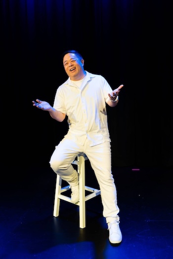 Chris Grace performing his one-man show Sardines. Photo: courtesy of the Huntington Theatre Company