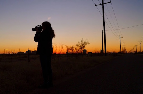 A scene from the documentary Love + War. Lynsey Addario on assignment in Iridimi Refugee Camp, Wadi Fira, Chad. (National Geographic/Caitlin Kelly)