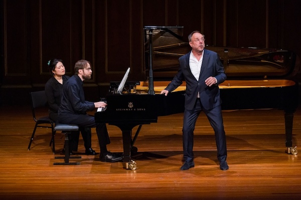 Pianist Daniil Trifonov, baritone Matthias Goerne, and page-turner Rubi Yan at Jordan Hall. Photo: Robert Torres