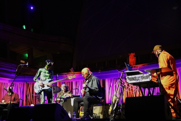 Club d’Elf opened its show with an instrumental version of the Grateful Dead’s “Bird Song.” Band members decked out in masks and costumes, Club d’Elf patiently journeyed through the jammy ballad, with Mister Rourke applying spiky textures atop the mellower grooves with Barry and Levine paying homage to Jerry Garcia with their own spin on cosmic roots music.