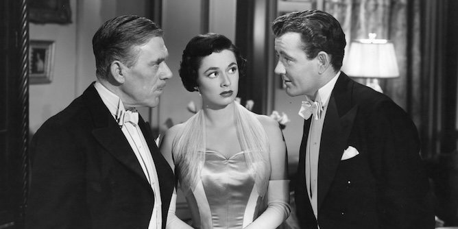 Leo G. Carroll, Ruth Roman, and Robert Walker in Strangers on a Train.