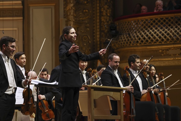 Conductor Anna Handler being applauded at her Symphony Hall debut. Photo: Winslow Townson
