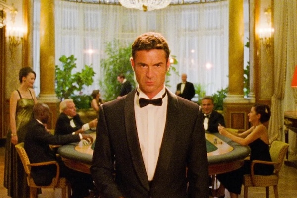 John D. (played by Fabio Testi as an old man) is a 70-year-old who spends his days at a hotel on France’s Côte d’Azur, sitting and drinking by the beach. His hat and white suit resemble Dirk Bogarde’s costume in Luchino Visconti’s Death in Venice, but Testi looks more like Sean Connery. A former spy, he still carries a gun when he goes out of his apartment. He’s living off a cache of diamonds that he recovered when he was a much younger man (Yannick Renier, in this incarnation.) This version of John D. lived a glamorous existence at the opera and casino, sleeping with beautiful women and chasing down the miscreants working for a a villainous oil company. But Reflection In A Dead Diamond‘s narration keeps slipping off the rails, as if someone has dropped LSD in John D. ’s martini. His past and present morph into one another — and neither seems quite real. The editing juxtaposes both incarnations of John D., with wild extremes of color and light heightening the disorientation.