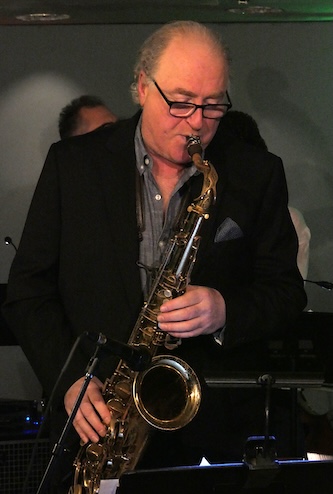 In two completely different sets at the Regattabar, the band played across the entire discography, with a chunk of the first given to their “Ethiopian Suite.” The second set (the one I attended) opened with one of their classic mash-ups, a funked up version of Thelonious Monk’s “Nutty” joined to Bobbie Gentry’s “Ode to Billie Joe,” the latter introduced by Gershon’s plaintive statement of the theme on tenor (in an arrangement by former E/O keyboardist Kenny Freundlich). The finale was “Red,” Robert Fripp’s composition for King Crimson, with an arrangement by former E/O guitarist John Dirac (and the original drummer from the album track, Jerome Deupree, sitting in at the R-bar).