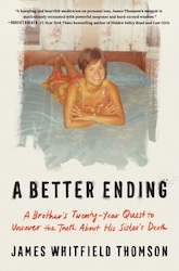 A Better Ending: A Brother’s Twenty-Year Quest to Uncover the Truth About His Sister’s Death, by James Whitfield Thomson, is a memoir as high-tension cold-crime investigation on one hand, and an act of self-examination and reparation on another. When Eileen in depression apparently shoots herself, the family soon accepts her sorrowing husband’s account and its back-up by the ‘Blue Wall.’ Only decades later, when Thomson wants to fictionalize his sister’s story, and starts gathering old files, does doubt take root. His great luck, and the reader’s, is the never-say-impossible private investigator who pulls in the most unlikely helpers and witnesses for the final confrontation.
