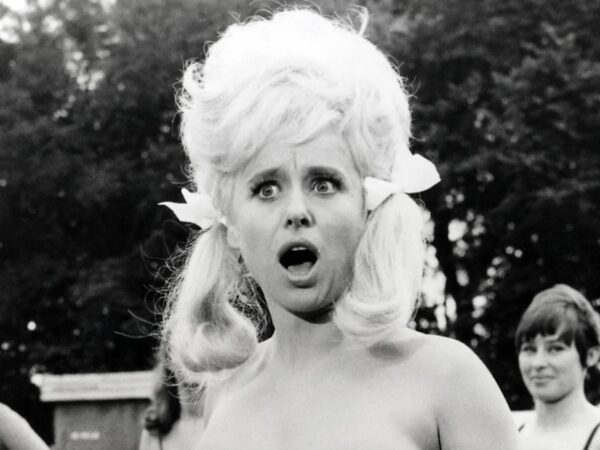 Barbara Windsor, the Carry On blonde, was best known for being cast in the formulaic “Carry On” comedy franchise (Carry on Doctor, Carry On… Up the Khyber, Carry on Cleo, Carry on Sergeant, Carry on Screaming, etc.)—genre films which, like the satirical Monty Python series, drew on the raucous Victorian music-hall tradition for inspiration. Nead writes that “Carry On films are low comedy, a tradition that goes back to classical Greece and is based on physical humor and bodily desire.”