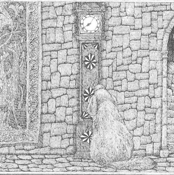 The story ends on a properly odd note—Ticky “muses” to himself that Pepita, the clock in the spare room that he especially likes, could not even say the word “professor” and knows only how to say, “Ticky, Ticky, Ticky.”