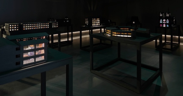 Yinka Shonibare, CBE, Sanctuary City, 2024. An installation of 18 miniature buildings. Photo: courtesy of Rose Art Museum
