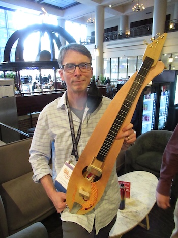 Michael Futreal of Rural Space Music, and his self-made gourd dulcimer. Photo: Daniel Gewertz