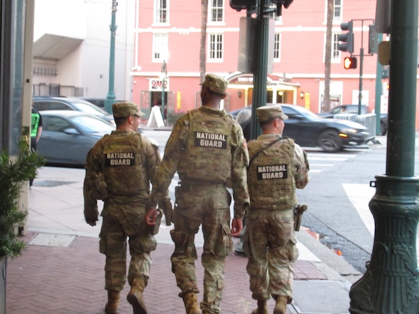 It was impossible not to notice the National Guard. In drug stores, restaurants, on sidewalks, they could be seen in groups from three to six, armed with guns or rifles. It was unsettling watching them adjust their rifle holsters while waiting in line next to me at Cafe Beignet.